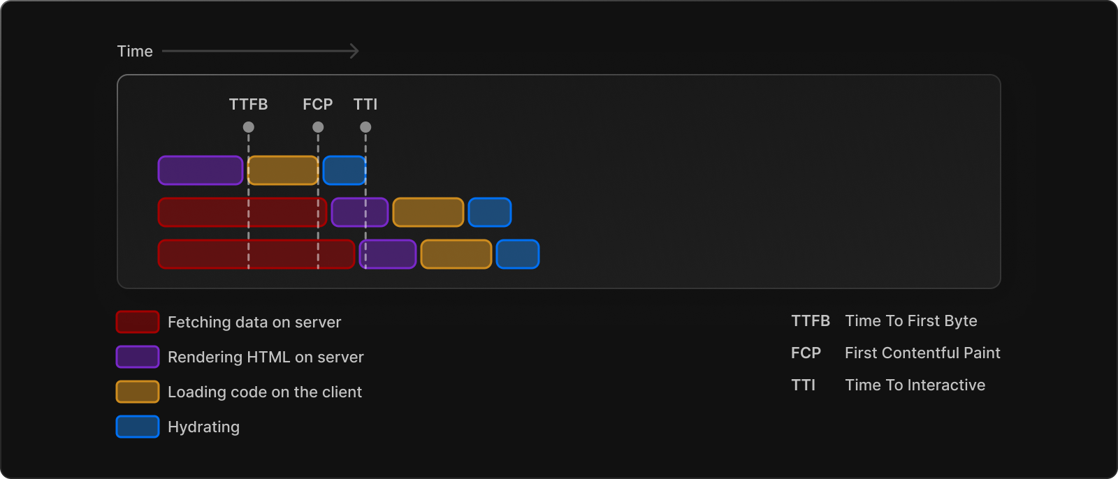 위와 같이 컴포넌트 단위대로 따로 로드하고 렌더링 하게 되어 맨 위 컴포넌트의 TTI는 매우 단축된 것을 알 수 있다.