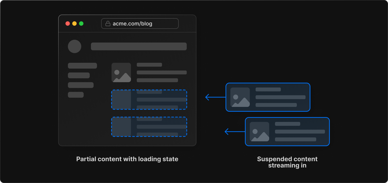 Streaming을 적용하면 아래와 같이 비동기 컴포넌트가 로딩 중이어도 다른 컴포넌트와 상호작용을 할 수 있다.