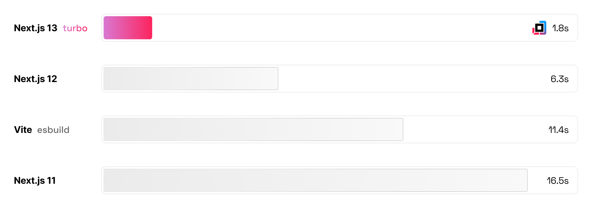 Turbopack은 Rust 기반의 번들러로 아래와 같은 성능을 보인다고 한다.