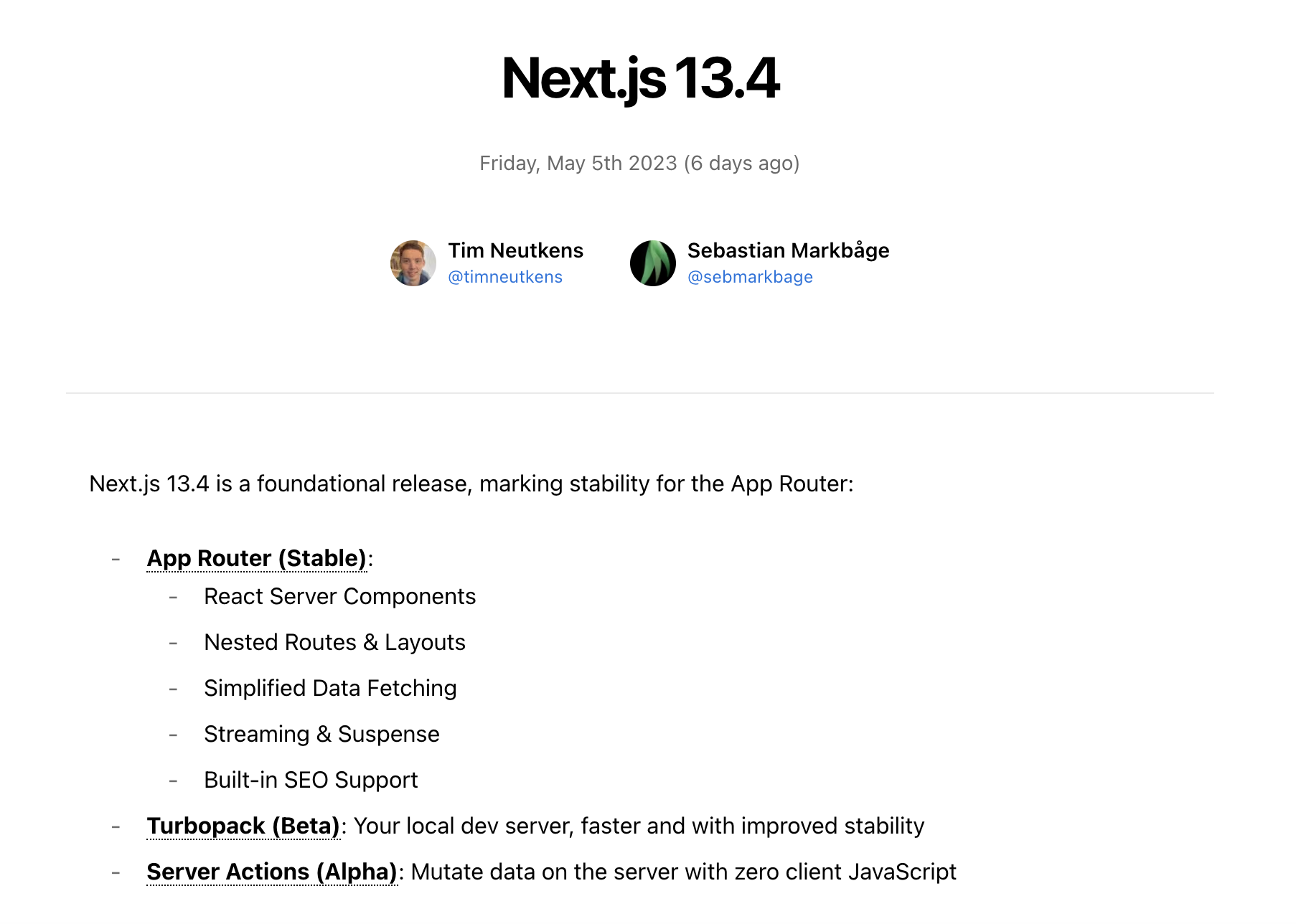 Next13(fetch, middleware)를 작성하던 중 Next 13.4 출시와 함께 App Router 안정화 버전 출시 소식이 들려왔다.
